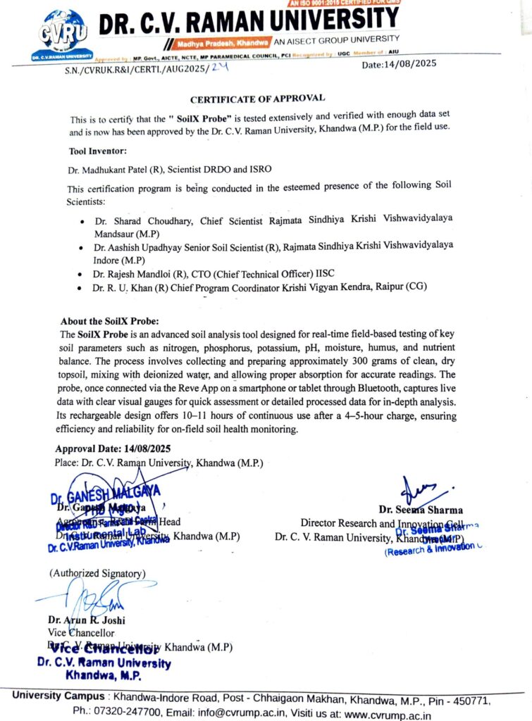 Reve Nano Science LLP, guided by Dr. Madhukant Patel, has developed an innovative soil testing device that helps farmers analyze their soil easily and accurately. Their dedication to agricultural technology and scientific excellence is truly inspiring.